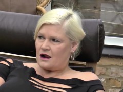 Blonde mature Darian calls Dirty D for a bukkake party
