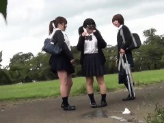 Asian teens pee outdoors