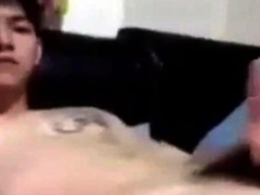 asian twink jerking off on bed on cam (1'12'')